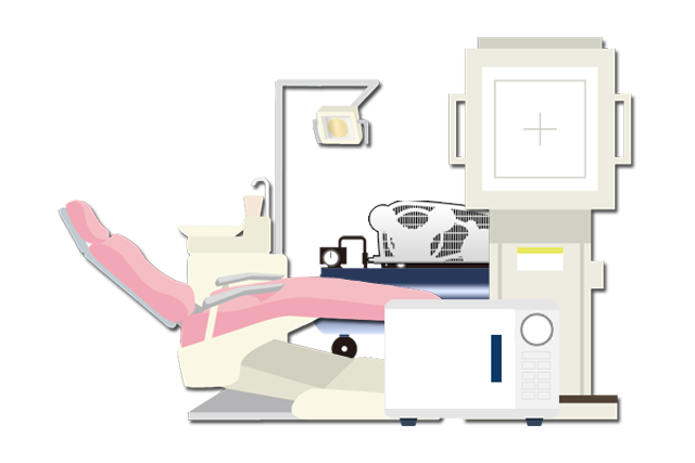 (歯科ユニット、パノラマレントゲン、オートクレーブ、コンプレッサー等)